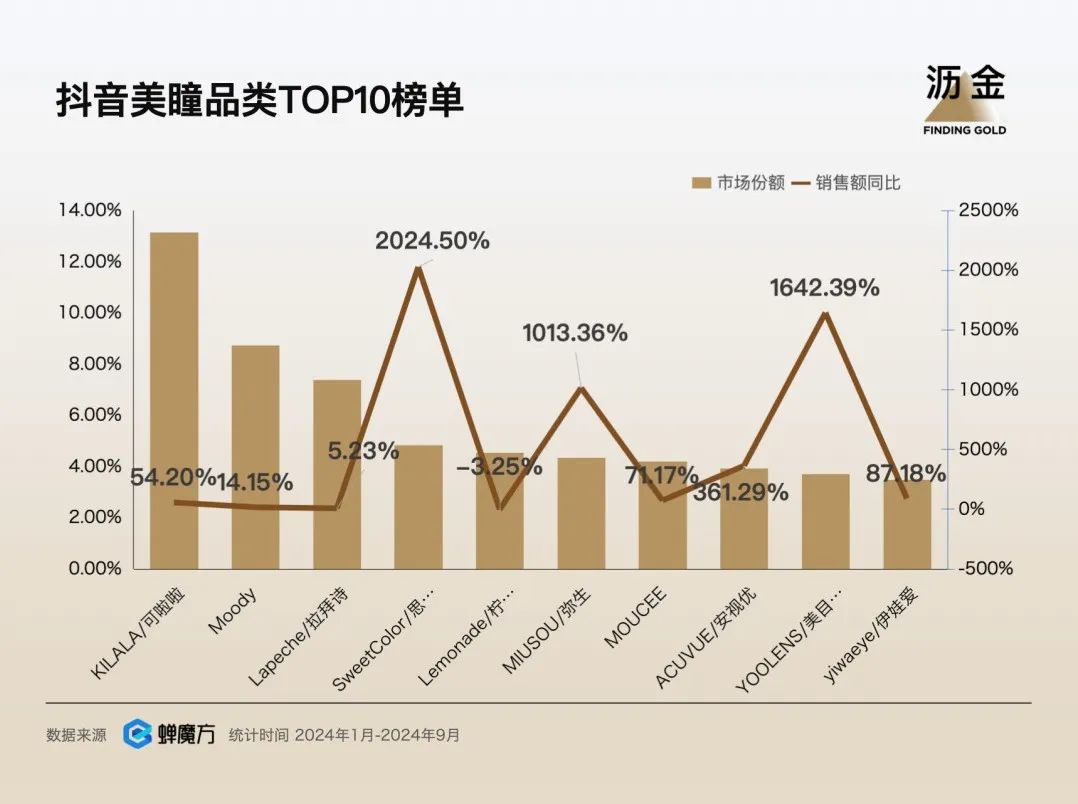 抖音美瞳品類TOP10榜單