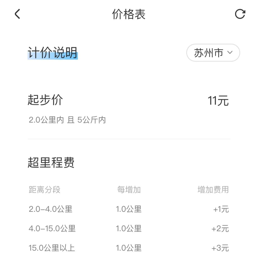 閃送價格表,圖源:閃送APP