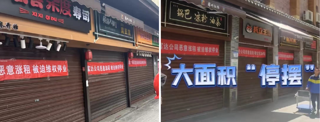 同時(shí),也不排除一些房東惡意漲租。今年3月,四川綿陽涪城區(qū)的網(wǎng)紅美食街“馬家巷”40余家餐飲門店集體閉店,這一事件并非單一門店租金上漲的問題,而是整條美食街的門店都面臨著集體漲價(jià)的局面。社交平臺(tái)上顯示,商戶放下卷簾門,統(tǒng)一懸掛條幅,表達(dá)了對(duì)房租上漲的不滿和抗拒。據(jù)悉,大部分租金的漲幅在70%-100%。