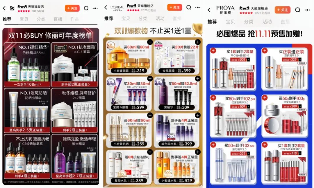 截圖自修麗可、巴黎歐萊雅、珀萊雅天貓旗艦店
