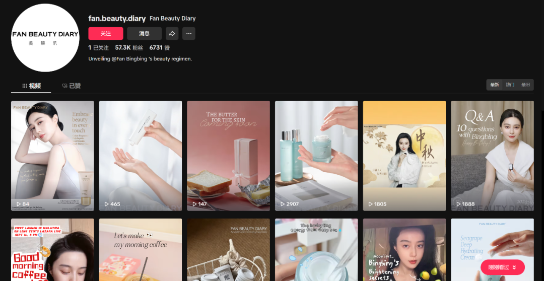 今年6月份,F(xiàn)an Beauty Diary官宣入駐TikTok的介紹視頻里,范冰冰表示該賬號將會在TikTok上“分享一切和美有關(guān)的事物”,并且“希望把獨(dú)特的東方之美帶給全世界的好朋友”。