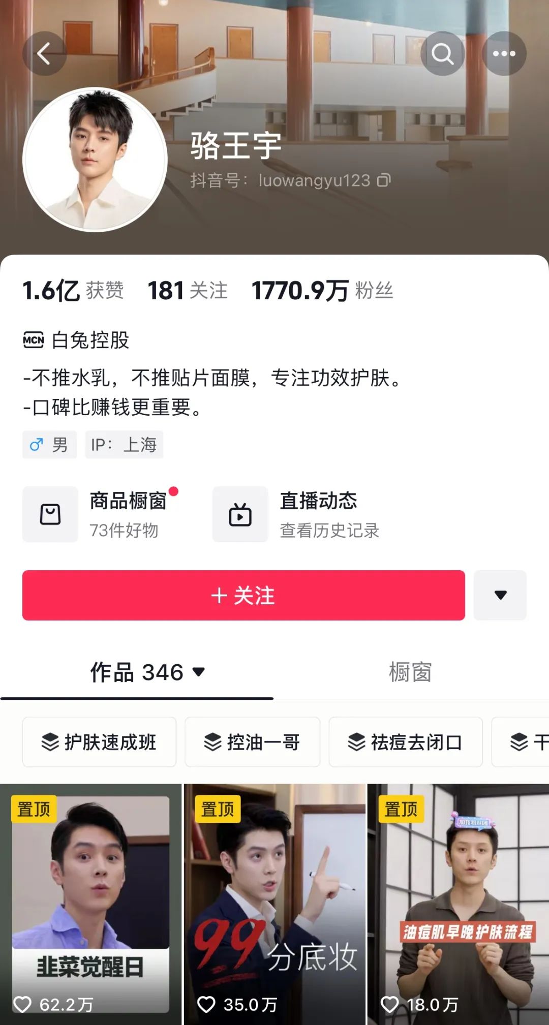在了解完淘寶美妝一哥李佳琦之后,我們?cè)賮砜纯磩傂蓟貧w的抖音美妝一哥駱王宇。