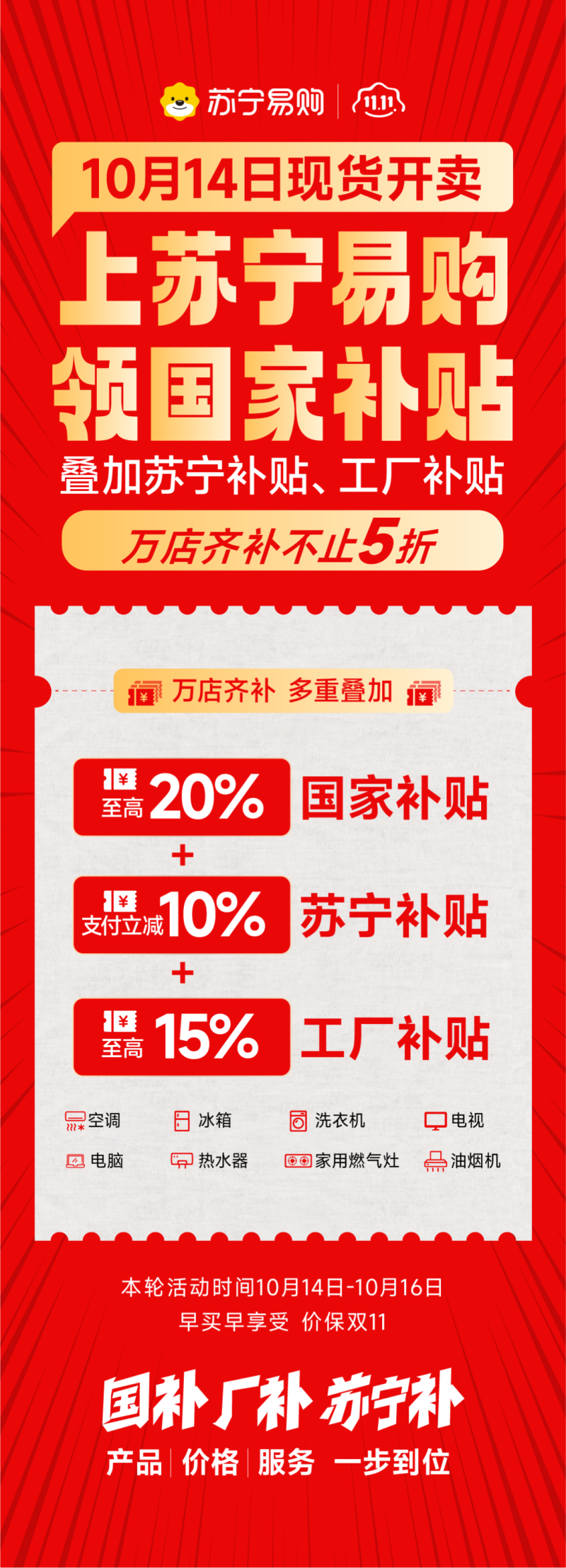 作為政府指定補(bǔ)貼發(fā)放平臺(tái),蘇寧易購(gòu)在政府對(duì)綠色節(jié)能產(chǎn)品15%-20%的優(yōu)惠基礎(chǔ)上,還聯(lián)合品牌商家、金融機(jī)構(gòu)為消費(fèi)者提供了更多優(yōu)惠、更好服務(wù)的換新體驗(yàn)。