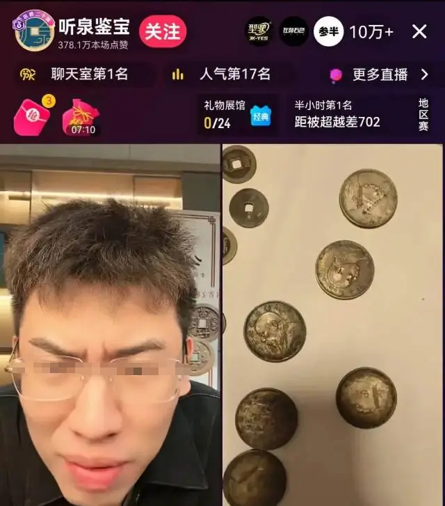 2023年8月聽泉鑒寶開始直播古玩鑒寶之路,主攻鑒定古代錢幣這一細(xì)分賽道。根據(jù)報道顯示,2024年1月初,聽泉鑒寶粉絲尚不足300萬,隨后不到一個月粉絲量翻倍,在2月中旬突破600萬。 隨后,便一發(fā)不可收拾,截至2024年10月11日,聽泉鑒寶粉絲已超過2444萬,獲贊數(shù)量8125.3萬,不到半年內(nèi)該賬號漲粉近1500萬。