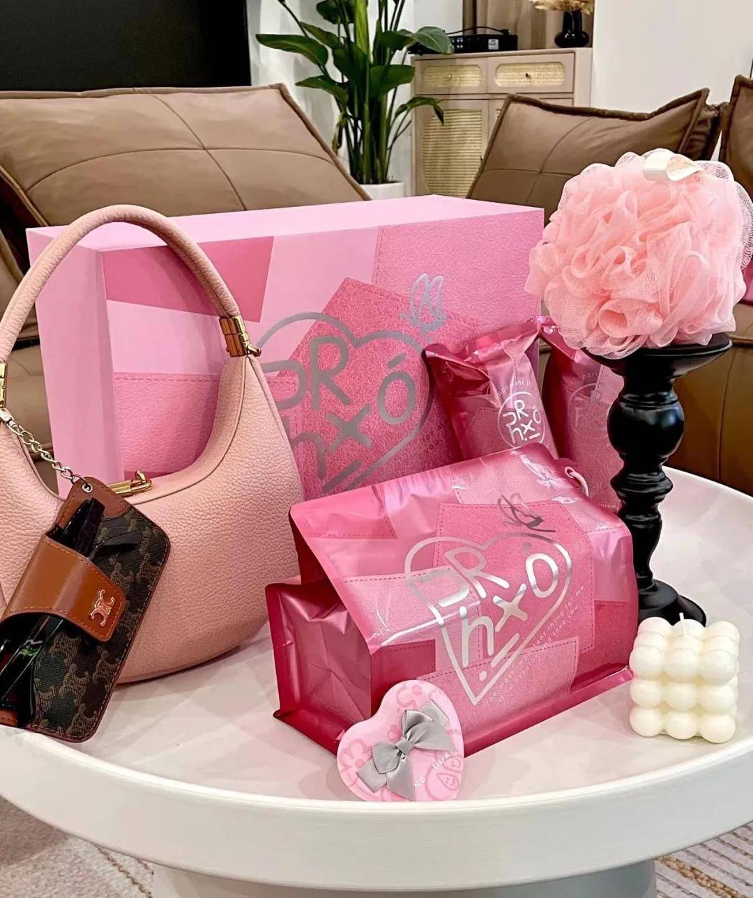 鎏金和燙銀,你很少能在一次性產(chǎn)品上看到這樣的配色。它的包裝上看不到功能性的描述,譬如“厚、柔、不掉毛”等產(chǎn)品賣點詞。相反,由于配有掛繩、密封條等,它的樣子有點像一個小拎包,或是家居擺件。絨呼吸希望它放在女生的梳妝臺上,和大牌美妝一起出現(xiàn)的時候,是匹配的。