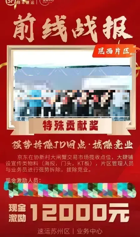 順豐員工拆除京東攬收點(diǎn),被內(nèi)部獎(jiǎng)勵(lì)1.2萬?