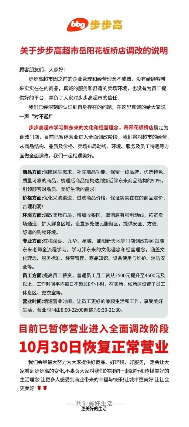 步步高超市學(xué)習(xí)胖東來調(diào)改第7店將于10月30日開業(yè)