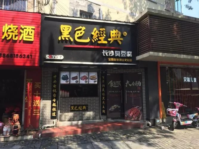 于是不知從何時(shí)起,黑色的臭豆腐幾乎和長(zhǎng)沙美食劃上了等號(hào)、成為長(zhǎng)沙的地理標(biāo)志性小吃,而率先走出湖南的臭豆腐小吃品牌也正用了這個(gè)“黑”給自己冠名“黑色經(jīng)典”。