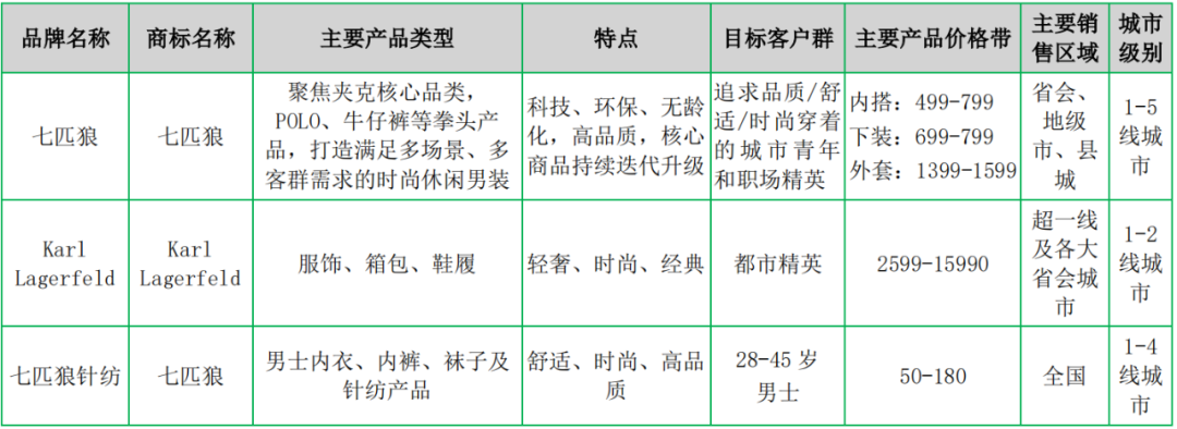 七匹狼主要從事男裝及針紡類產(chǎn)品的設(shè)計(jì)、生產(chǎn)和銷售,主要產(chǎn)品包括襯衫、西服、褲裝、夾克衫、針織衫以及男士?jī)?nèi)衣、內(nèi)褲、襪子及其它針紡產(chǎn)品等。除“七匹狼”品牌外,還經(jīng)營(yíng)法式輕奢品牌“Karl Lagerfeld”。