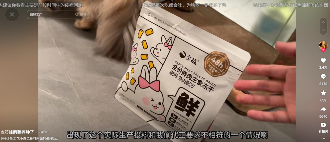 目前,大部分國內(nèi)寵物食品品牌仍然以代工模式為主;在很多養(yǎng)寵人心中,“代工”“貼牌”往往和品控不嚴劃上等號。今年9月,金故創(chuàng)始人鄧峰在社媒發(fā)布視頻,聲稱與金故合作的代工廠“源鮮”私自更改了產(chǎn)品配方,將原定的純鮮肉投放比例大幅縮減至25%,金故表示,會對受影響的產(chǎn)品實施全額退款。