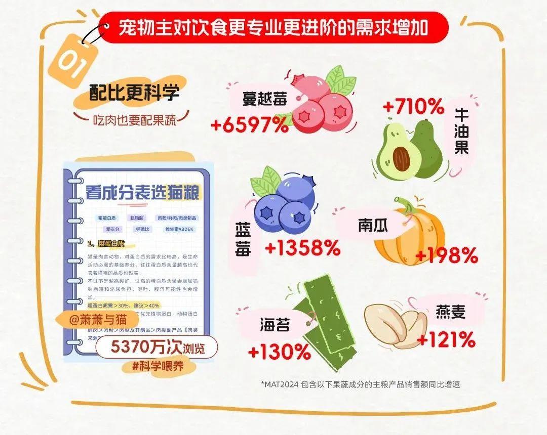 有數(shù)據(jù)顯示,寵物營養(yǎng)品以及專用糧、處方糧、品種專用糧等精細寵糧的市場規(guī)模在近年來都有所上升。小紅書相關(guān)報告里也提到,過去一年,添加葉黃素、輔酶Q10等養(yǎng)生成分的寵物主糧,銷售額同比增速在100%以上。也難怪有網(wǎng)友調(diào)侃,“月薪五千的自己,讓貓狗吃得像月薪五萬!