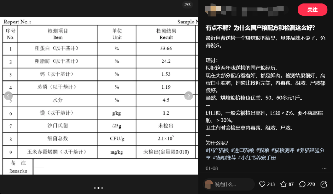進口品牌的信任危機,讓不少養(yǎng)寵人對洋貨“祛魅”。謝文提到,幾年前在小紅書上分享購買國產(chǎn)貓糧,還會遭到“給流浪貓才吃這個”的吐槽,但現(xiàn)在如果你說自己只買進口糧,反而會遭到各種“不認真做功課”的嘲笑。