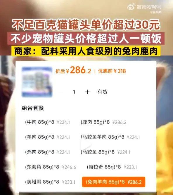有網(wǎng)友吐槽,現(xiàn)在一袋凍干動輒七八十塊起步,“一天的工資只購買兩袋凍干”;很多國產(chǎn)品牌的罐頭價格,已經(jīng)超過了進口大牌!案F養(yǎng)自己富養(yǎng)寵”的風(fēng)潮,正在加速掏空養(yǎng)寵人的錢包。