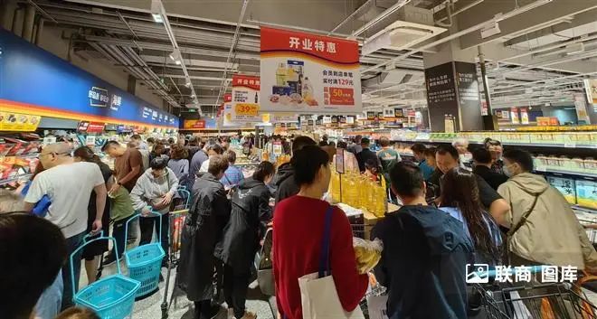 今天早上8:00未到,門口用鐵馬區(qū)隔處就排滿了顧客。一開門,顧客便蜂擁而入,賣場很快就擠滿了顧客,門店不得不階段性地采取限流措施。