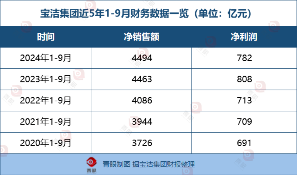 而整體看今年前三季度,即2024年1-9月,寶潔業(yè)績則再創(chuàng)新高。據(jù)財(cái)報(bào)顯示,2024年1-9月,寶潔凈銷售額為4494億元,創(chuàng)下過去五年間同期的最高值。不過,相比之下,2024年1-9月的凈利潤為782億元,略低于2023年同期的808億元。