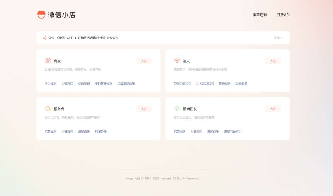 嚴(yán)格意義上來(lái)說(shuō),這并非視頻號(hào)借著早在去年便確定的中老年用戶(hù)池“佛系養(yǎng)魚(yú)”,而是其將更多精力投入到了商家側(cè)——過(guò)去數(shù)月內(nèi),視頻號(hào)電商最大的動(dòng)作無(wú)疑是開(kāi)放“視頻號(hào)小店”向生態(tài)內(nèi)全域覆蓋的“微信小店”的升級(jí),其中最為引人注目的是微信小店打通商品與微信生態(tài)的連接,以及在此之下的店鋪商詳信息的流轉(zhuǎn)。