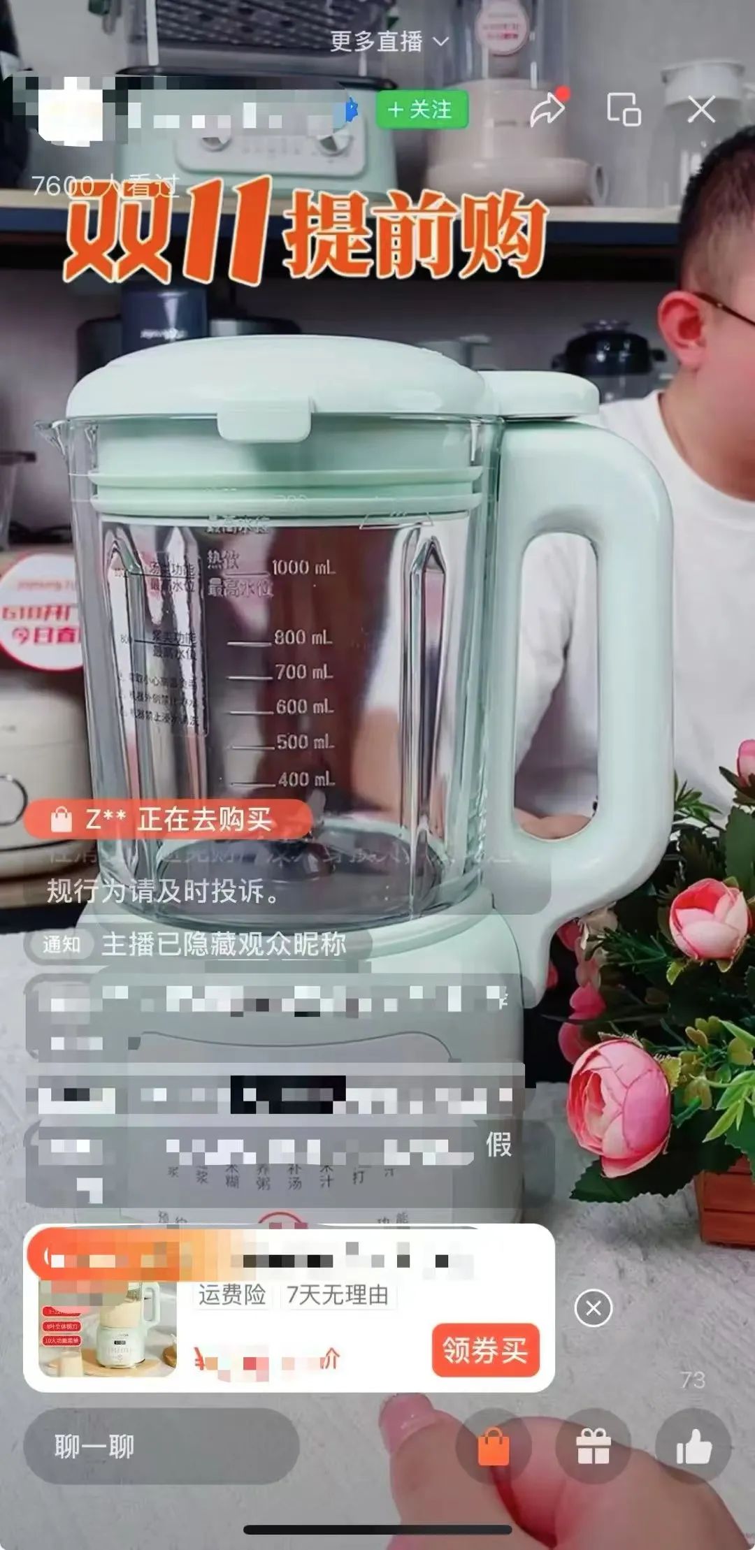以前述廚電品牌為例,雙11期間,其在抖音的直播矩陣由官方旗艦店領(lǐng)銜,培養(yǎng)好的達(dá)人立于精心布置的溫馨布景中為觀眾逐一講解產(chǎn)品賣(mài)點(diǎn)與福利力度。反觀其在視頻號(hào)的直播間則是由各級(jí)不同的分銷(xiāo)商“各自為戰(zhàn)”,投入資源不等,其中寒酸些的甚至都未有真人出鏡,僅有一雙來(lái)自畫(huà)外的手展示與擺弄產(chǎn)品。