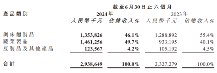 財報顯示,2021年-2023年,衛(wèi)龍美味蔬菜制品營收分別為16.64億元、16.93億元、21.19億元,分別同比增長42.5%、1.8%、25.1%。2024年上半年,衛(wèi)龍美味蔬菜制品營收14.61億元,同比增長56.59%,營收占比高達(dá)49.7%,超越調(diào)味面制品業(yè)務(wù),成為公司第一大營收支柱。