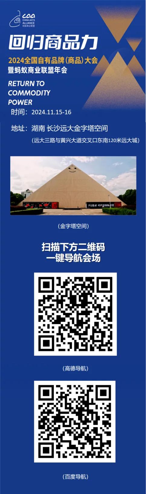 2024年11月15日-11月16日,長(zhǎng)沙遠(yuǎn)大金字塔空間,2024全國(guó)自有品牌(商品)大會(huì)暨螞蟻商聯(lián)年會(huì),期待您的參與!