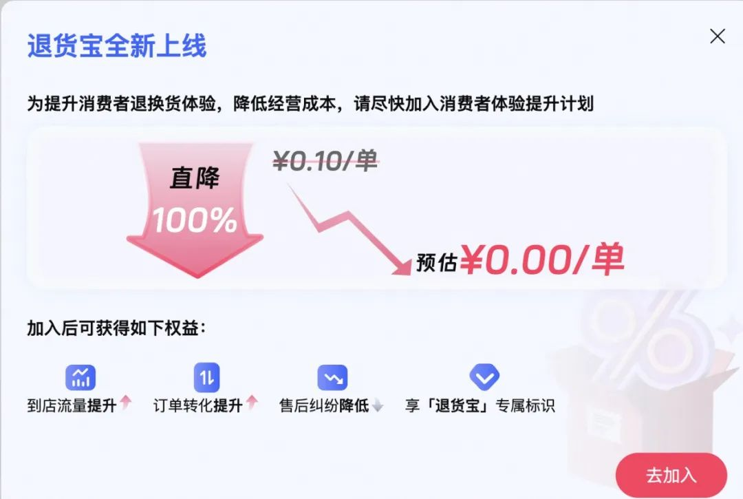 上個(gè)月在雙11大促即將來臨之際,淘寶在退換貨場景推出“退貨寶”,降低商家退換貨成本。淘寶表示,將為商家降低至少10%的退貨成本,部分商家最高將獲得30%的成本直降。在此基礎(chǔ)上,淘寶還為商家提供了貨在途攔截補(bǔ)貼。