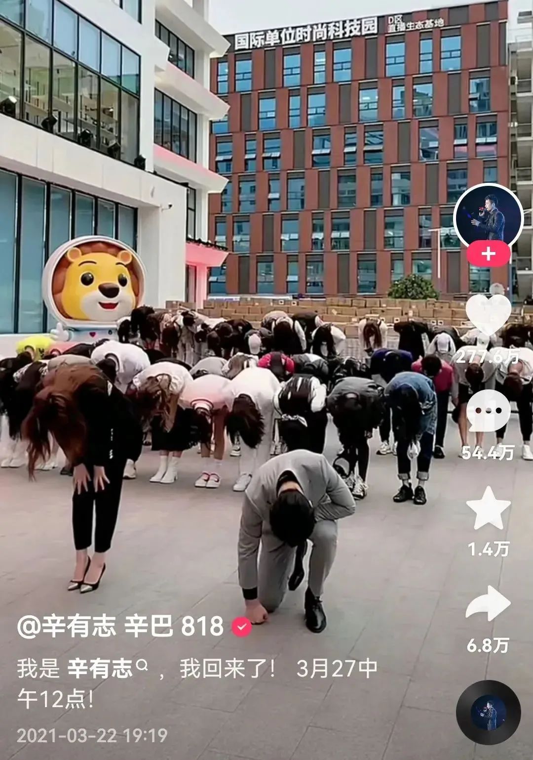 2021年3月22日,在賬號得到解封后,辛巴就發(fā)視頻宣布自己的回歸。視頻中,辛巴帶著妻子和全體員工向所有用戶道歉,其本人更是直接單膝下跪。