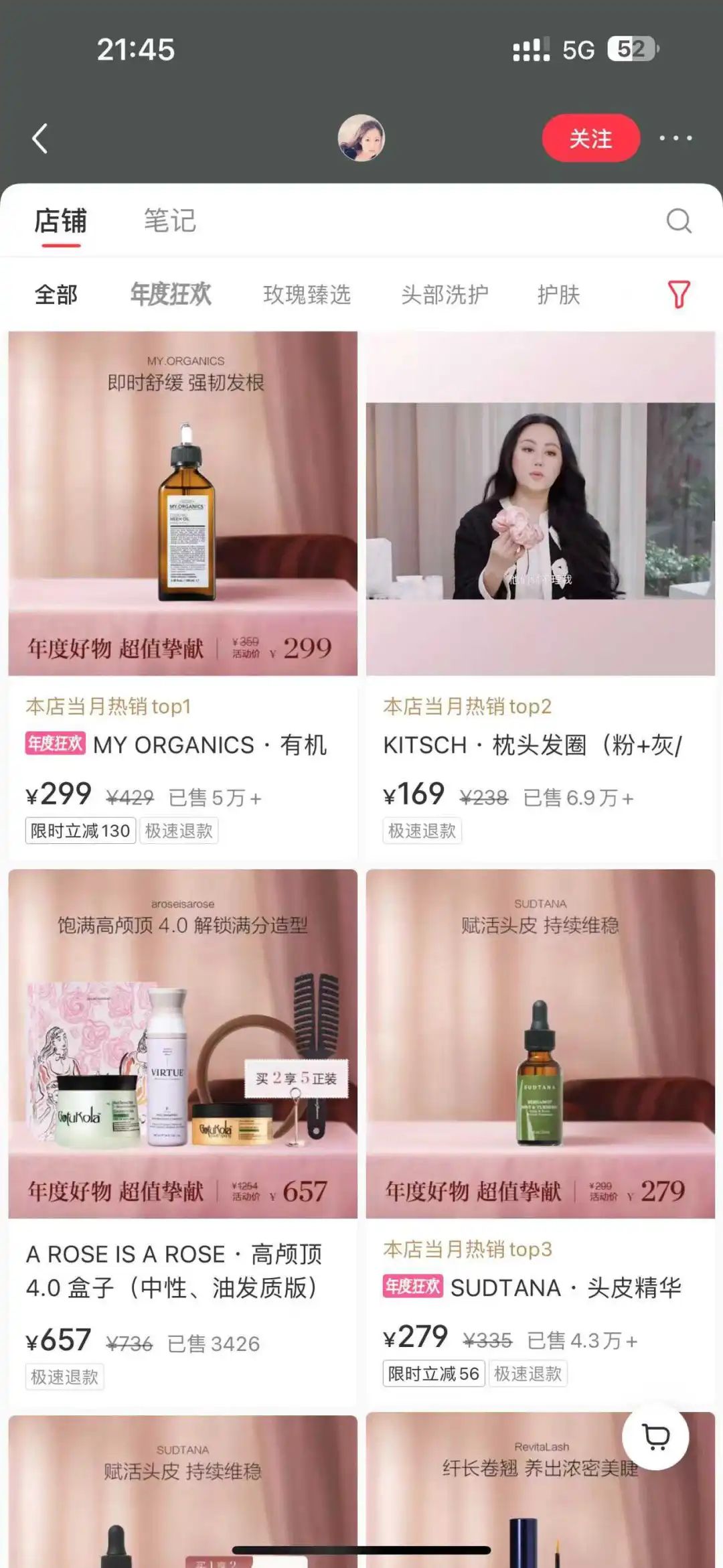 她的櫥窗,品牌全都來自海外,包裝簡(jiǎn)約,其中賣的最好的幾乎大多是頭發(fā)、頭皮護(hù)理類產(chǎn)品,畢竟章小姐如今60歲,仍是一頭烏黑蓬松的頭發(fā)。