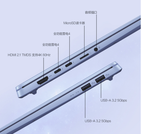 兩側接口也是非常豐富,雙全功能雷電4、HDMI 2.1 TMDS、MicroSD讀卡器,再加上兩個USB-A接口,絕大多數(shù)設備外連、數(shù)據(jù)傳輸需求都能滿足。