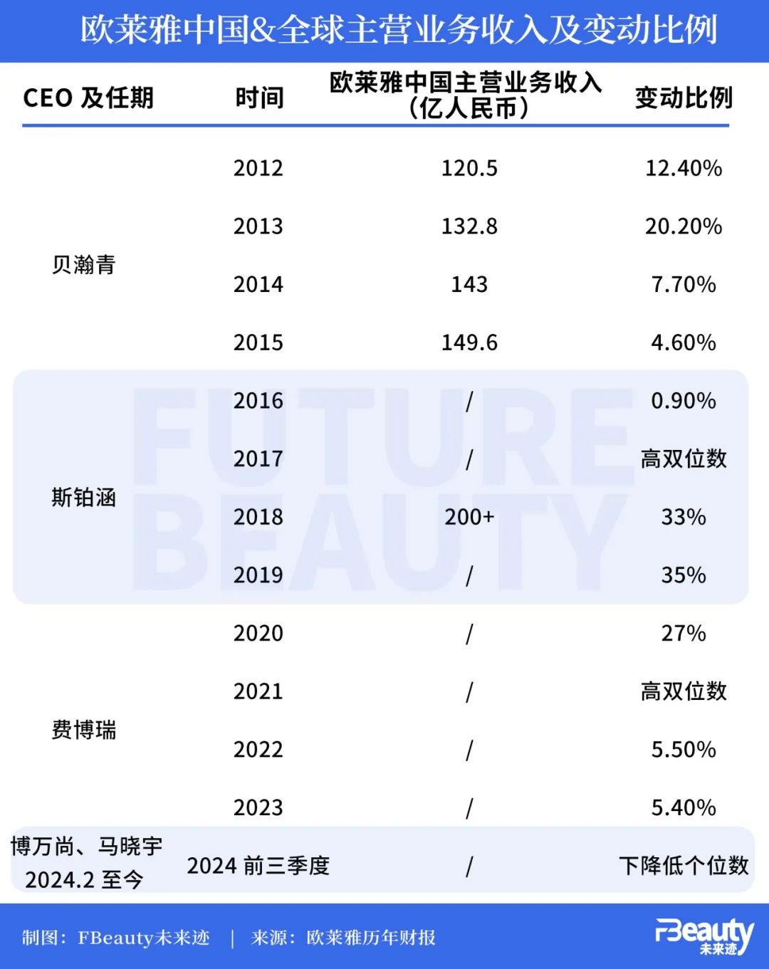 綜合多年來歐萊雅集團在中國市場的業(yè)績表現(xiàn)來看,倘若第四季度沒能扭轉(zhuǎn)下滑,今年有可能會成為歐萊雅中國近13年來首次下滑的年份。