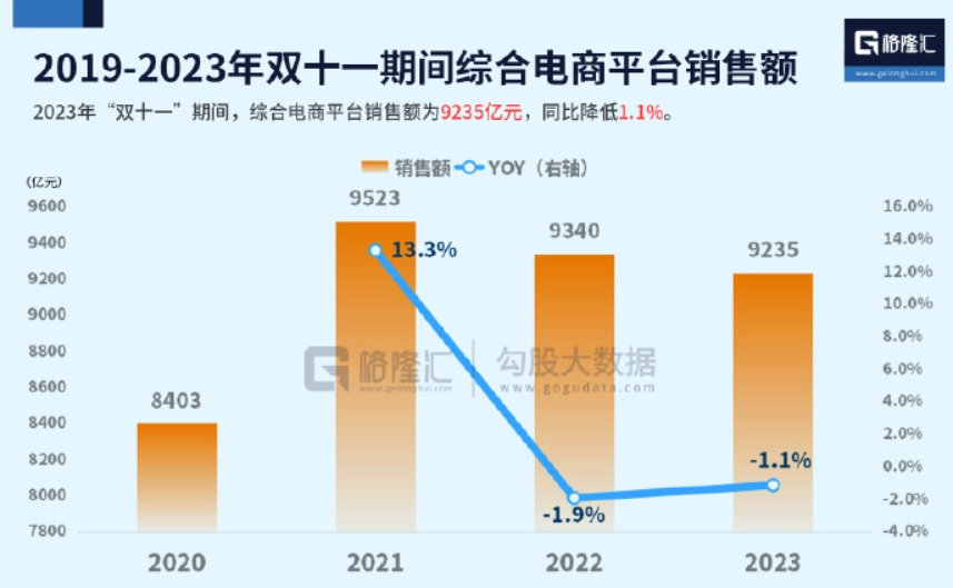 隨著2023年電商平臺(tái)的低價(jià)競(jìng)爭(zhēng)進(jìn)入“白熱化”階段,“雙11”更是直接引爆了全網(wǎng)低價(jià)競(jìng)賽的高潮;可即便如此,這一年的雙11整體交易額卻沒(méi)有實(shí)現(xiàn)明顯的增長(zhǎng)。
