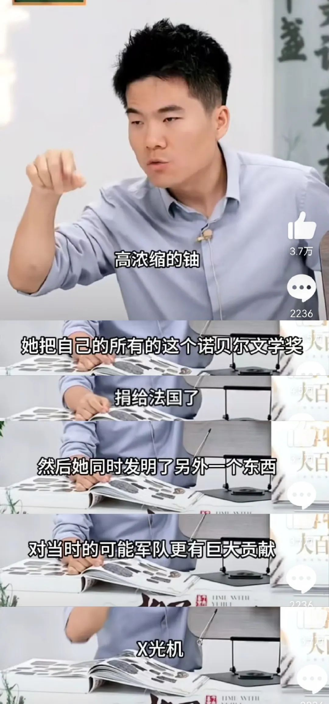 在9月,董宇輝因口誤,稱居里夫人獲得了諾貝爾文學(xué)獎(jiǎng),并且將獎(jiǎng)金捐給了法國。同時(shí),董宇輝還稱居里夫人發(fā)現(xiàn)了鈾元素和發(fā)明了X光機(jī)。