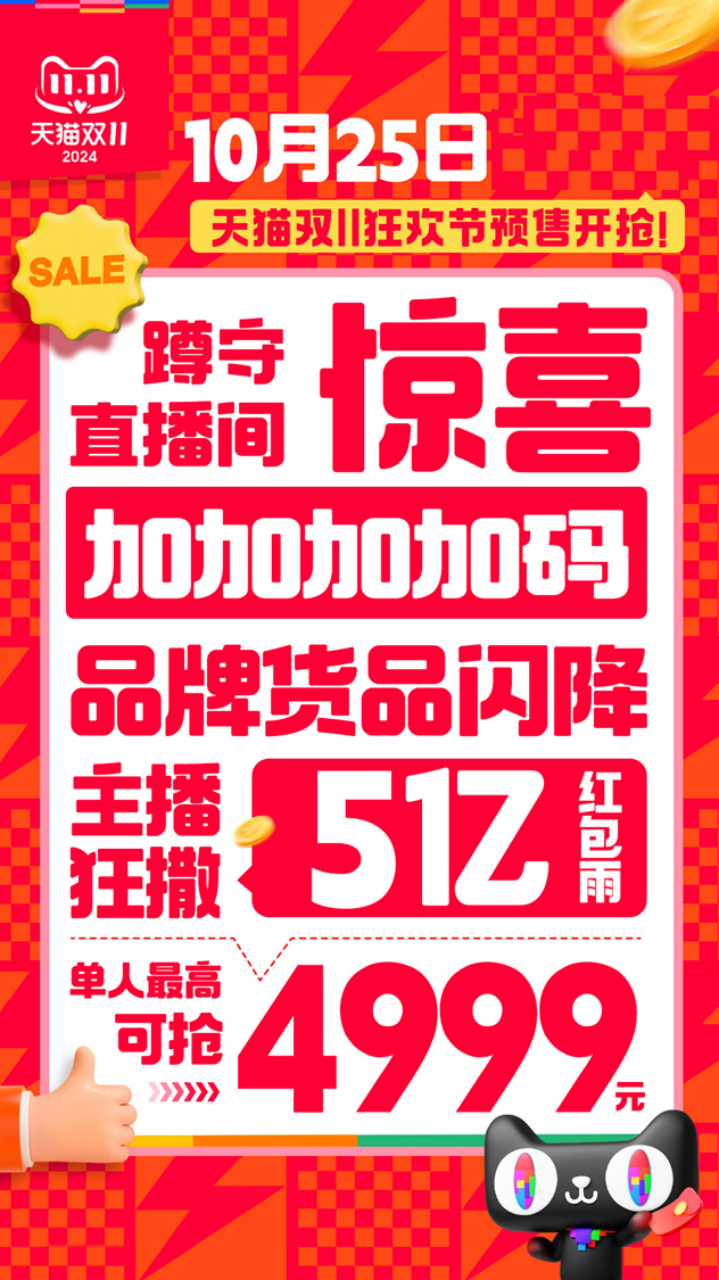 淘寶直播間紅包再加碼,天貓雙11再降5億紅包雨