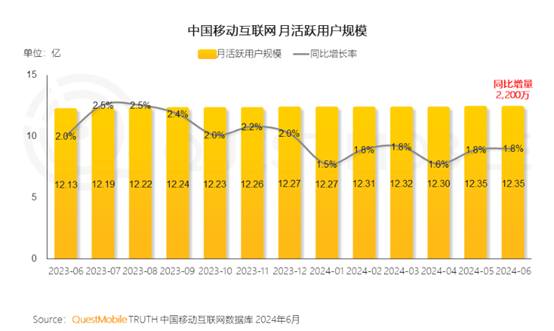 QuestMobile披露的《2024年中國移動互聯(lián)網(wǎng)半年報(bào)告》顯示,2024年6月,中國移動互聯(lián)網(wǎng)月活規(guī)模為12.45億,同比僅增長1.8%,增速幾近于無。顯而易見,中國移動互聯(lián)網(wǎng)很難再給電商平臺提供豐沃的流量。