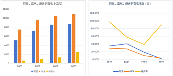 盡管行業(yè)天花板漸顯露,但主打極致低價(jià)的拼多多卻兇猛成長。財(cái)報(bào)顯示,2023年,拼多多營收2476.39億元,同比增長90%,凈利潤600.26億元,同比增長90%。