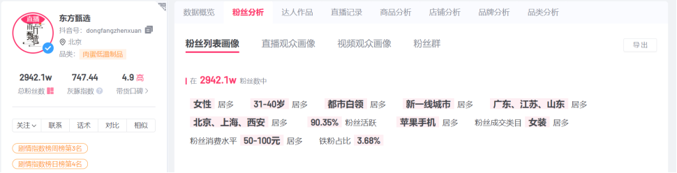 還有一個有意思的細節(jié)是,有第三方數(shù)據(jù)顯示,至今與輝同行和東方甄選的用戶畫像還高度相同。女性,31-40歲,可見即使分了家,兩個賬號所爭奪的還是同一個客戶群體,或者說與輝同行的很多客戶群就是原來關(guān)注東方甄選的客戶群。而未來董宇輝熱度逐步降低,直播電商運營進入深水區(qū)的時代,長期來看,如何建構(gòu)好商品供應鏈可能遠比頭部主播的形象維護要重要得多了。