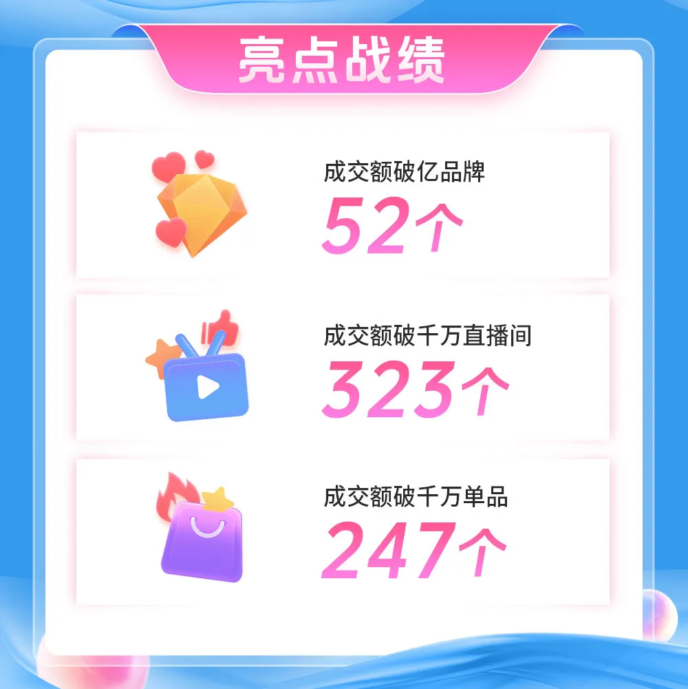 根據(jù)抖音電商10月18日發(fā)布的戰(zhàn)報數(shù)據(jù)顯示,10月8日至17日,抖音電商平臺累計有52個品牌成交額破億元,323個直播間成交額破千萬元,247個單品成交額破千萬元,直播間商品曝光超2000億次。