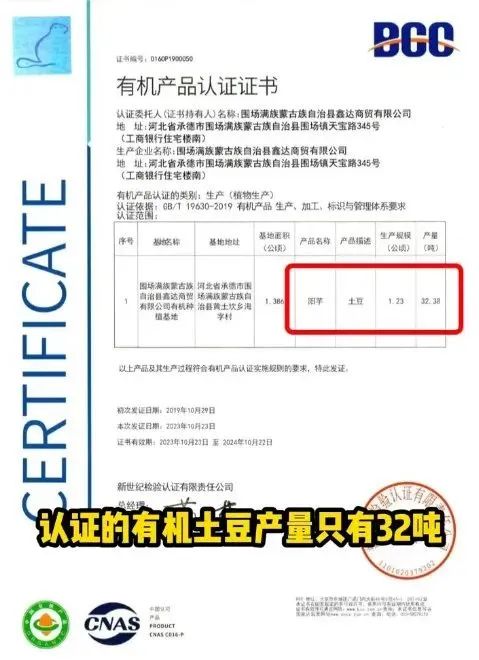 王海進(jìn)一步揭露,雖然與董宇輝合作的供應(yīng)商鑫達(dá)商貿(mào)公司確實擁有部分土豆的有機(jī)認(rèn)證,但認(rèn)證的有機(jī)土豆產(chǎn)量僅為32.38噸。然而,在董宇輝的直播中,這款土豆的銷量卻超過了6.6萬單,換算后總量遠(yuǎn)超165噸,這顯然與有機(jī)土豆的實際產(chǎn)量不符。