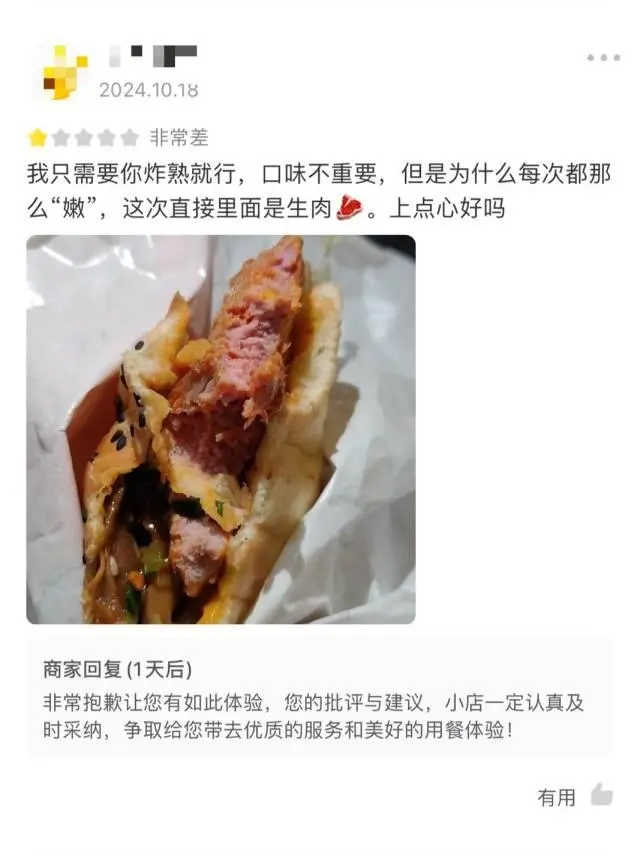 塔斯汀作為中式漢堡頭部品牌,吃出生肉這種負(fù)面丑聞以后不能再出現(xiàn)了,不能再背刺消費(fèi)者了。