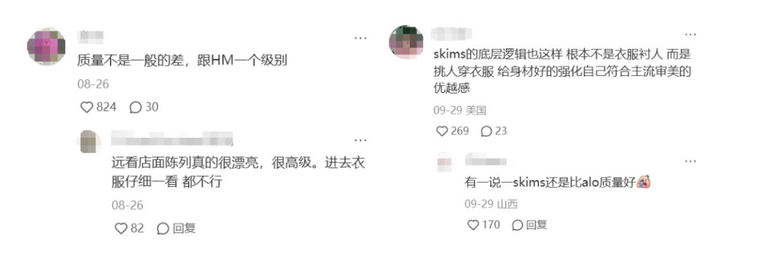 雖然質(zhì)量被大面積吐槽,但隨著lululemon越來越“爛大街”,曾經(jīng)專屬super girls的符號意義有被稀釋之嫌,價(jià)位相當(dāng)甚至更高、品牌形象更小眾的Alo趁虛而入,靠更時(shí)髦、更街頭的潮流調(diào)性拿到了更高的顏值分。