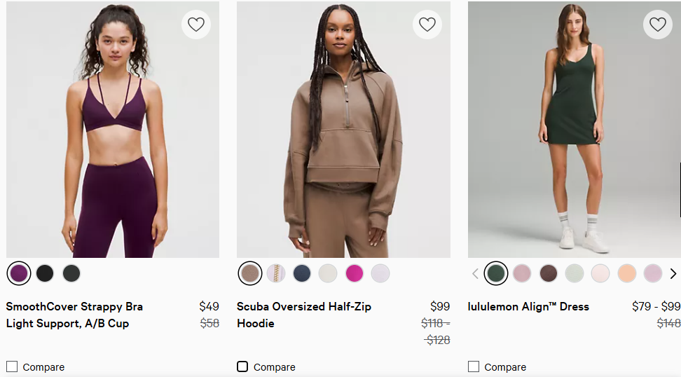 曾經(jīng)永不打折的lululemon現(xiàn)在也加入大促。今年618,天貓旗艦店多款特價(jià)商品低至5折;官網(wǎng)也早就開辟了折扣專區(qū),特價(jià)天天享。