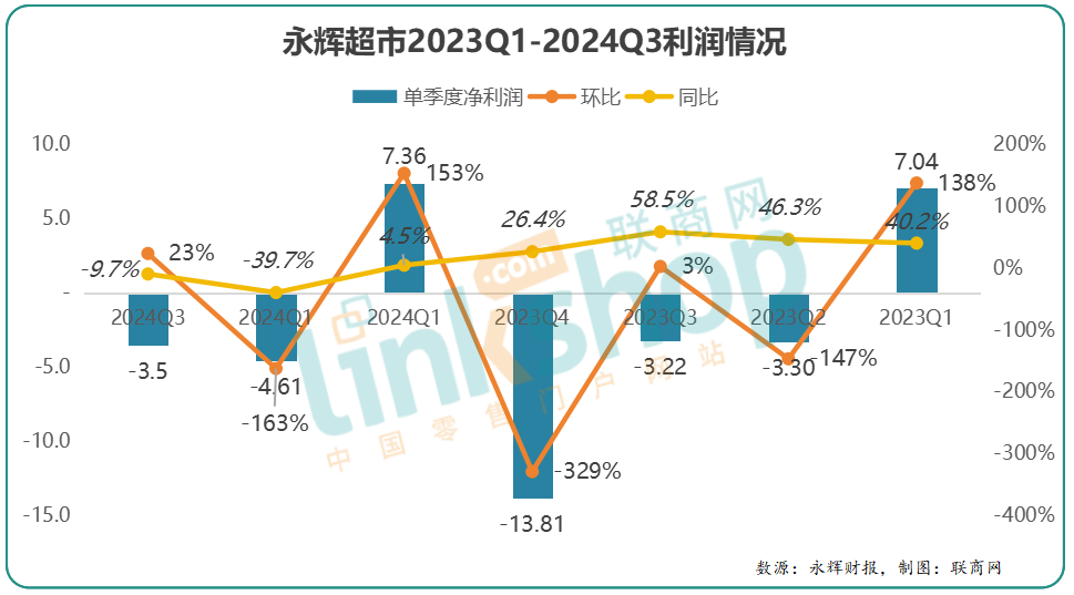 10月30日傍晚,永輝超市發(fā)布2024年第三季度報告。報告期內公司實現(xiàn)營業(yè)收入167.70億元,同比下降16.40%;歸屬于上市公司股東的凈利潤為-3.53億元。