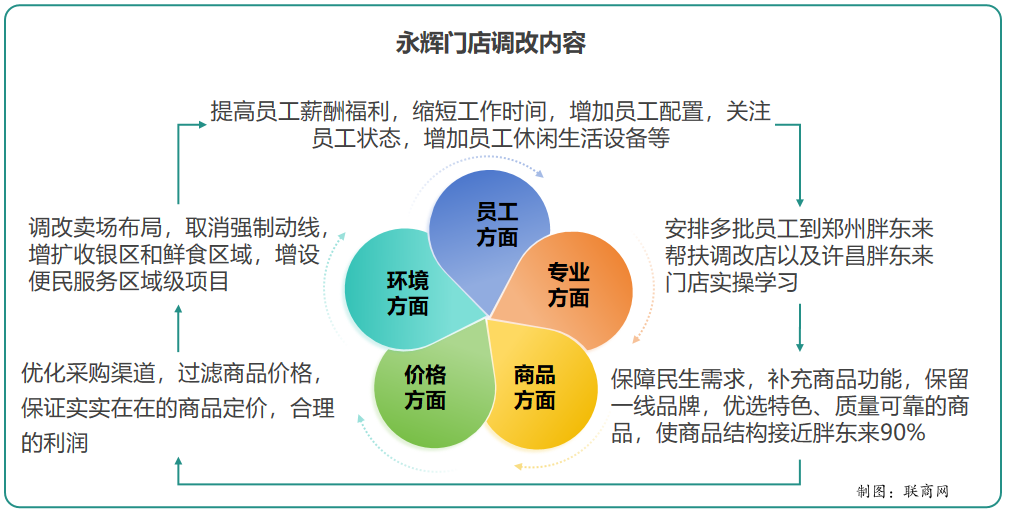 從動作上看,以增加員工福利和員工關懷為主題的內部「愛」,和以優(yōu)化商品結構、環(huán)境布局、增加服務細節(jié)的外部「愛」相互結合,共同升級,使調改門店業(yè)績得到大幅提升,內外合一,有望使企業(yè)進入正向價值循環(huán)。