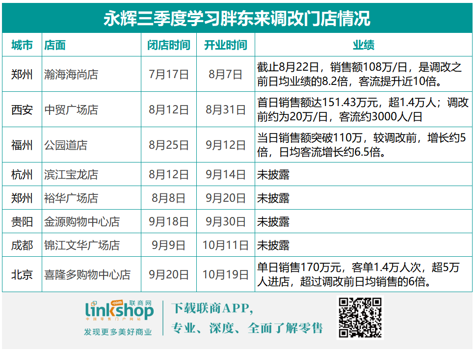 而具體來看,永輝的每一家店關、調、開都會成為行業(yè)熱點,三季度具體調改執(zhí)行如下:
