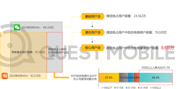 顯然,接入微信支付后,微信多出來的數(shù)億月活,將有可能拉動淘寶成長。對此,摩根大通在研報中指出,平臺互聯(lián)互通有望為淘寶帶來20%~30%增量用戶,總用戶規(guī)模達2億~3億。