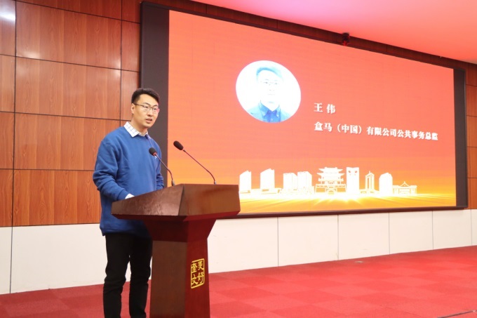盒馬(中國(guó))有限公司公共事務(wù)總監(jiān)王偉對(duì)盒馬鮮生經(jīng)營(yíng)特色進(jìn)行介紹并對(duì)濰坊首店經(jīng)營(yíng)作出展望。
