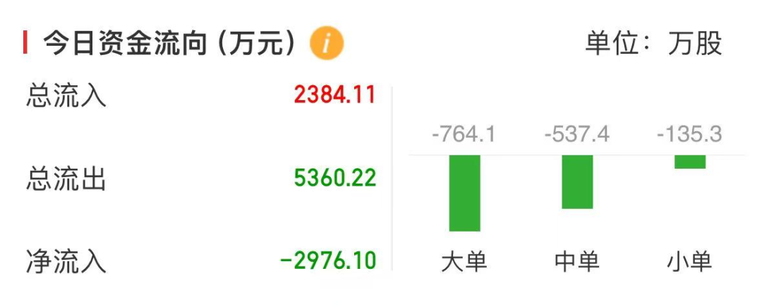 同花順APP顯示,今日的資金流向中,超1300萬股為大單、中單流出,占比超90%。換句話說,就是有重要股東在進(jìn)行減持。