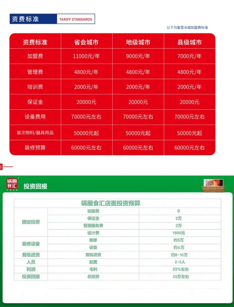 二者的商業(yè)模式使得業(yè)績高度依賴加盟商,加盟商數(shù)量的增長直接促進(jìn)了鍋圈和蜜雪冰城的業(yè)績增長,那么,加盟商對二者來說至關(guān)重要,而加盟商最關(guān)注的便是多久能夠回本、自己可以賺多少錢。