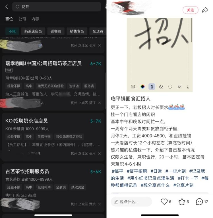 在人工成本方面,在BOSS直聘以及其他軟件上,奶茶店店員、鍋圈店員的招聘工資分別在6千元、4千元左右,按蜜雪冰城配備3名員工、鍋圈配備2名員工計(jì)算,蜜雪冰城每月需要支付員工1.8萬元,鍋圈需要支付員工8千元。