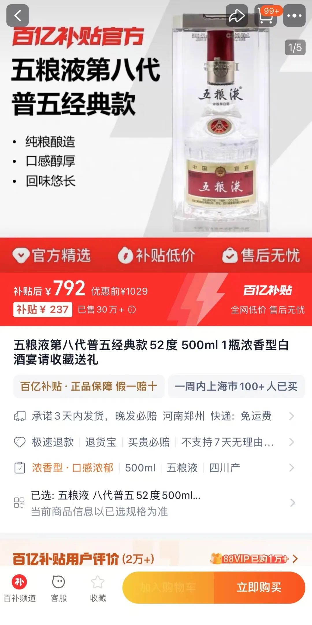 這并非孤例。在拼多多的“百億補(bǔ)貼”專區(qū),飛天茅臺(tái)的價(jià)格也同樣下探至2000元以下。