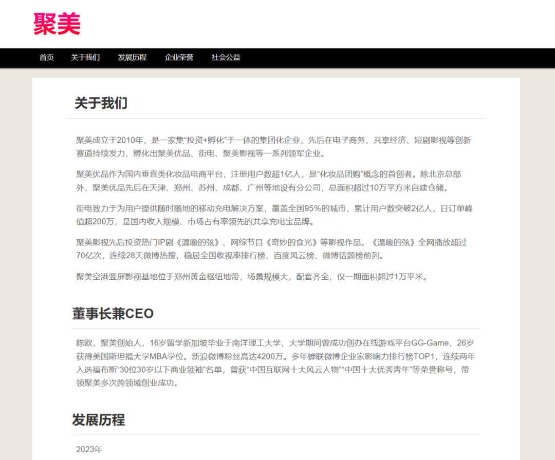 在嘗試訪問聚美優(yōu)品官網(wǎng)時(shí),鋅財(cái)經(jīng)發(fā)現(xiàn)網(wǎng)站已不再展示任何商品或購物信息,頁面僅保留了公司介紹、發(fā)展歷程等基本信息。