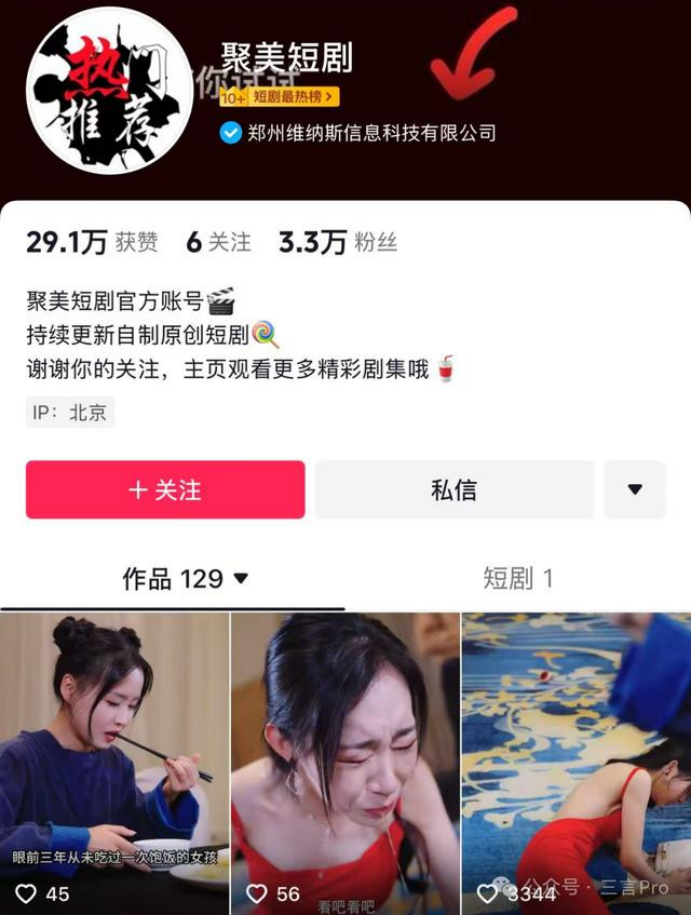 據(jù)財(cái)聯(lián)社報(bào)道,目前,聚美集團(tuán)制作的短劇已經(jīng)播出。從今年4月16日發(fā)布第一個(gè)作品,目前已經(jīng)有129個(gè)作品,內(nèi)容以豪門、霸總為主。